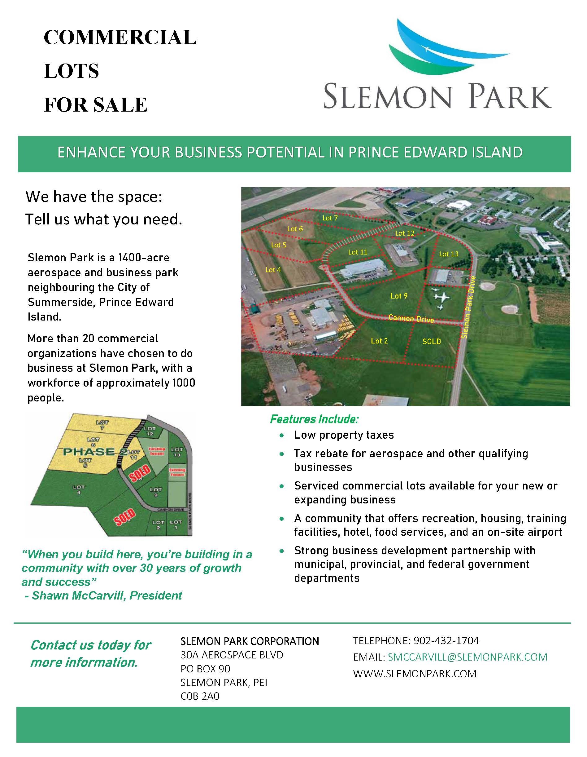 0 - property borders airport from Summerside Airport or Charlottetown in Slemon Park